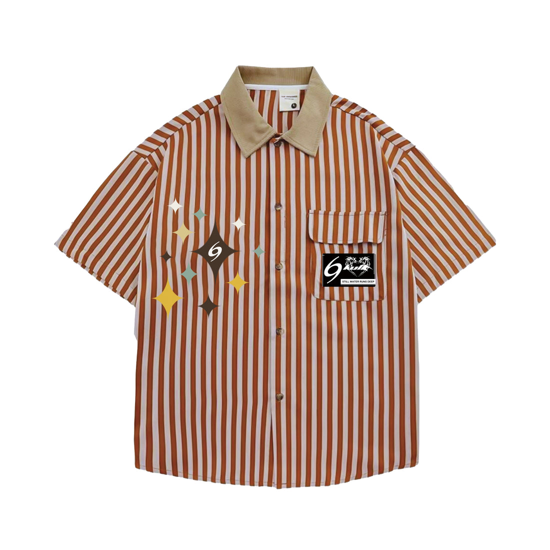 6Kull Preppy Striped Star Embroidered Shirt
