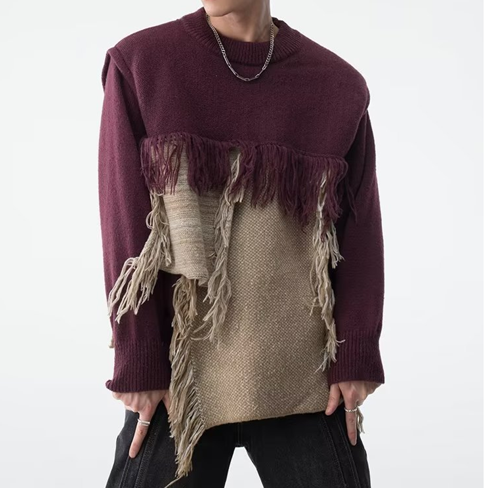 CE | Heavy Design Tassel Splicing Sweater