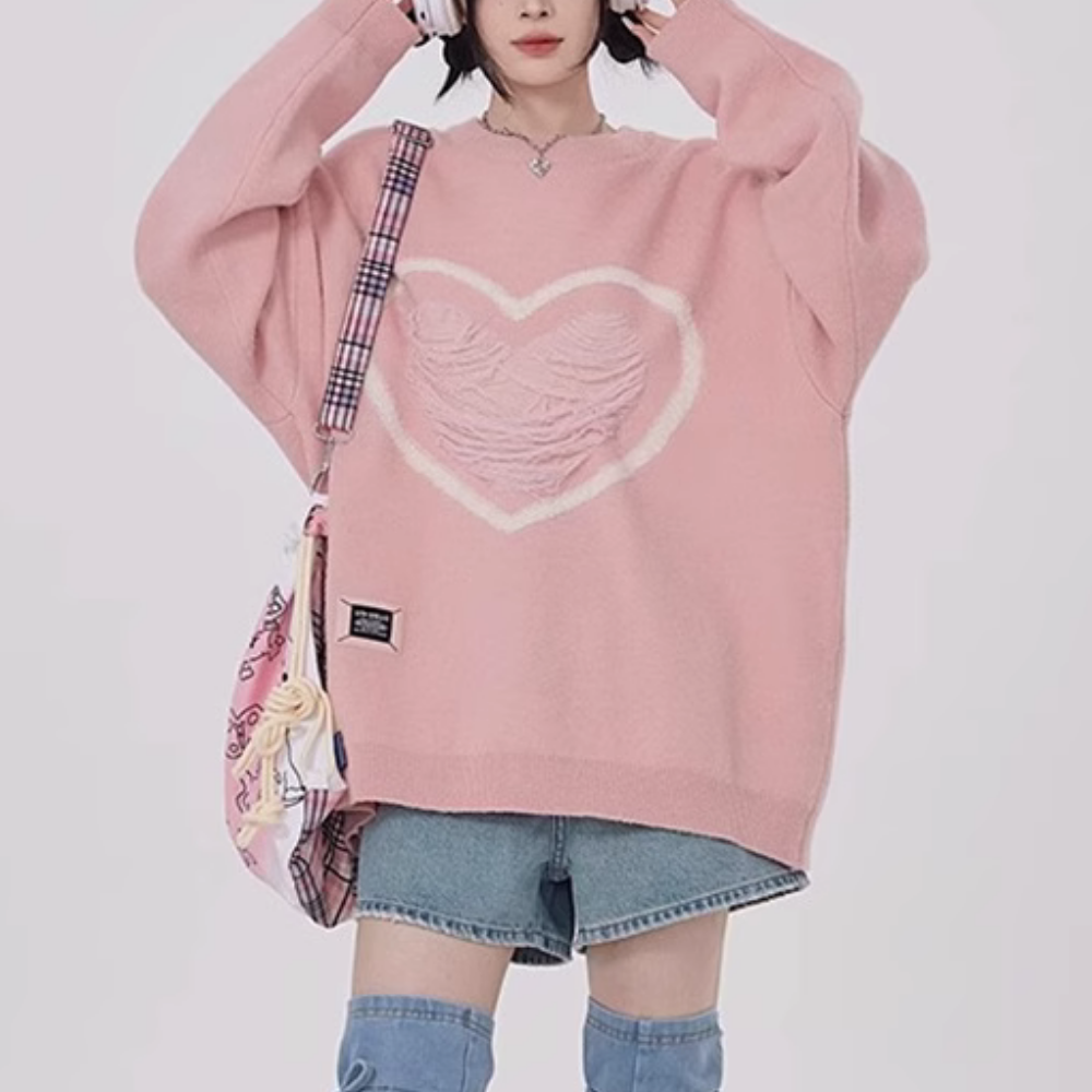 Women's Pink Love Solid Sweater