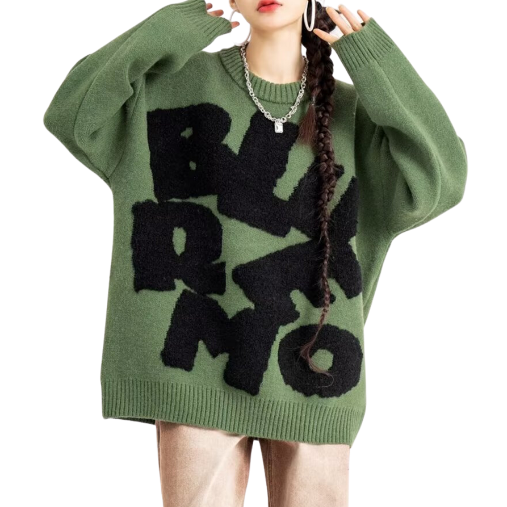 Women's Vintage Lettering Towel Embroidered Sweater