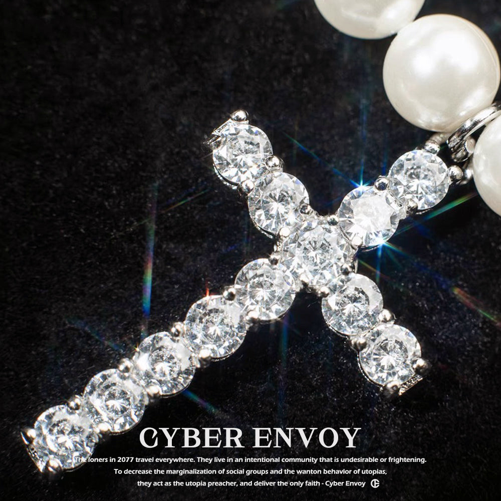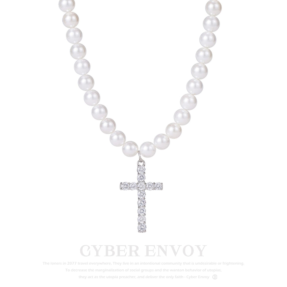 CE | Retro Luxury Pearl Cross Necklace