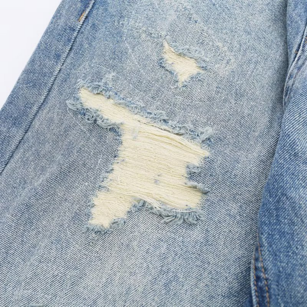 American High Street Washed Fake Hole Gradient Ripped Jeans