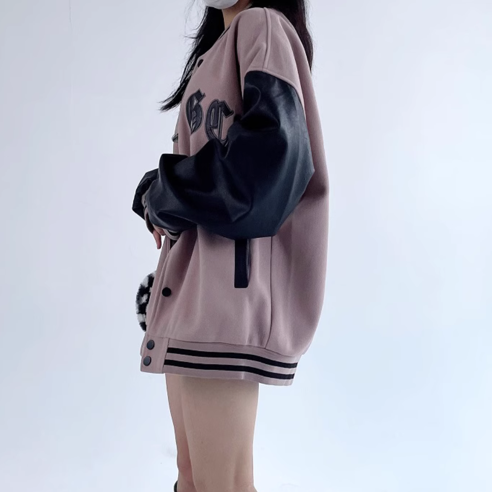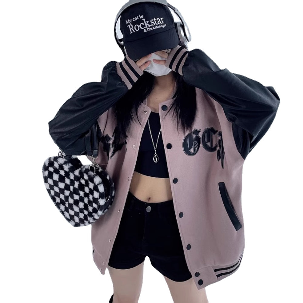 Women's Classic Gothic Lettering PU Patchwork Jacket
