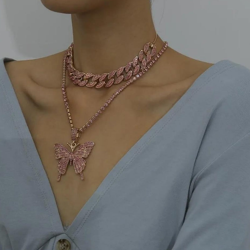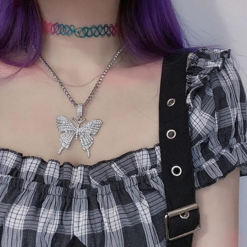 Rhinestone Butterfly Pendant Necklace
